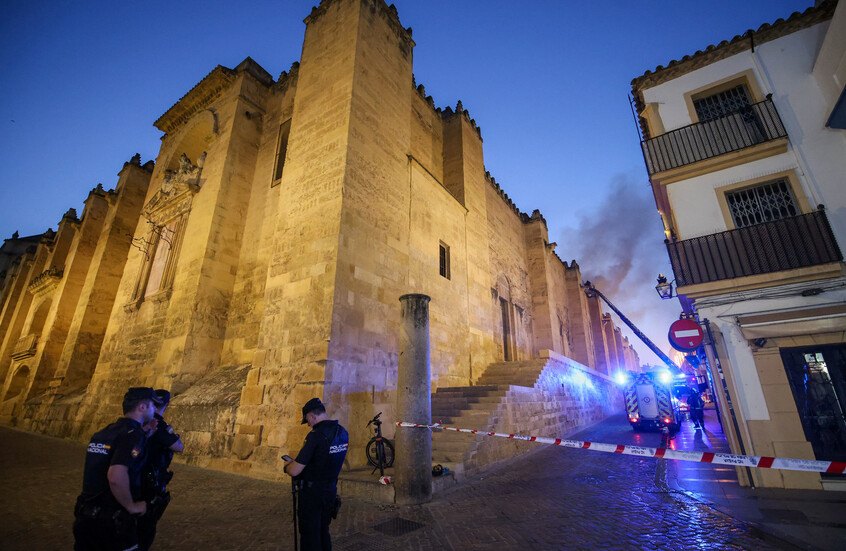 السوسنة - اندلع، حريق ضخم في مسجد قرطبة التاريخي، أحد أبرز المعالم الإسلامية في إسبانيا، حيث امتدت ألسنة اللهب بسرعة من سطح المبنى، ما أدى إلى أضرار في أجزاء من المسجد.