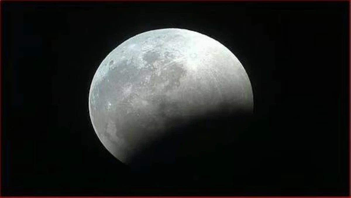 وبين مجاهد أنه لا يختفي القمر كلياً أثناء الخسوف الكلي، بل يكتسي اللون الأحمر النحاسي هذا الاحمرار ناتج عن ضوء الشمس الذي يتشتت في الغلاف الغازي الأرضي، حيث يمتص الغلاف الغازي الأرضي جميع أشعة الطيف الشمسي باستثناء الطيف الأحمر صاحب أطول موجه في أمواج الطيف الشمسي، فيكمل طريقه من أطراف الكرة الأرضية باتجاه القمر فيظهر بلون أحمر نحاسي ولولا هذه الظاهرة لاختفى القمر أثناء الخسوف.