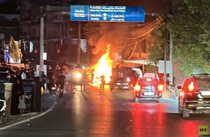 وذكرت مصادر في لبنان أن "غارة من مسيرة إسرائيلية بصاروخين استهدفت سيارة على طريق عام بلدتي حاريص - حداثا جنوب لبنان".