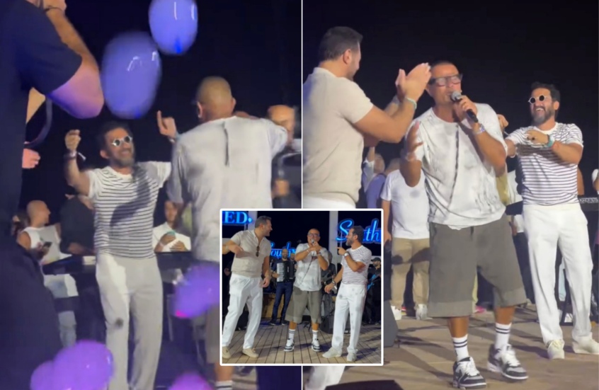 السوسنة - شهد حفل النجم عمرو دياب في الساحل الشمالي مساء السبت لحظة مفاجئة ومميزة، عندما صعد النجمان أحمد حلمي وعمرو يوسف فجأة على المسرح وسط ذهول وفرحة الحضور.