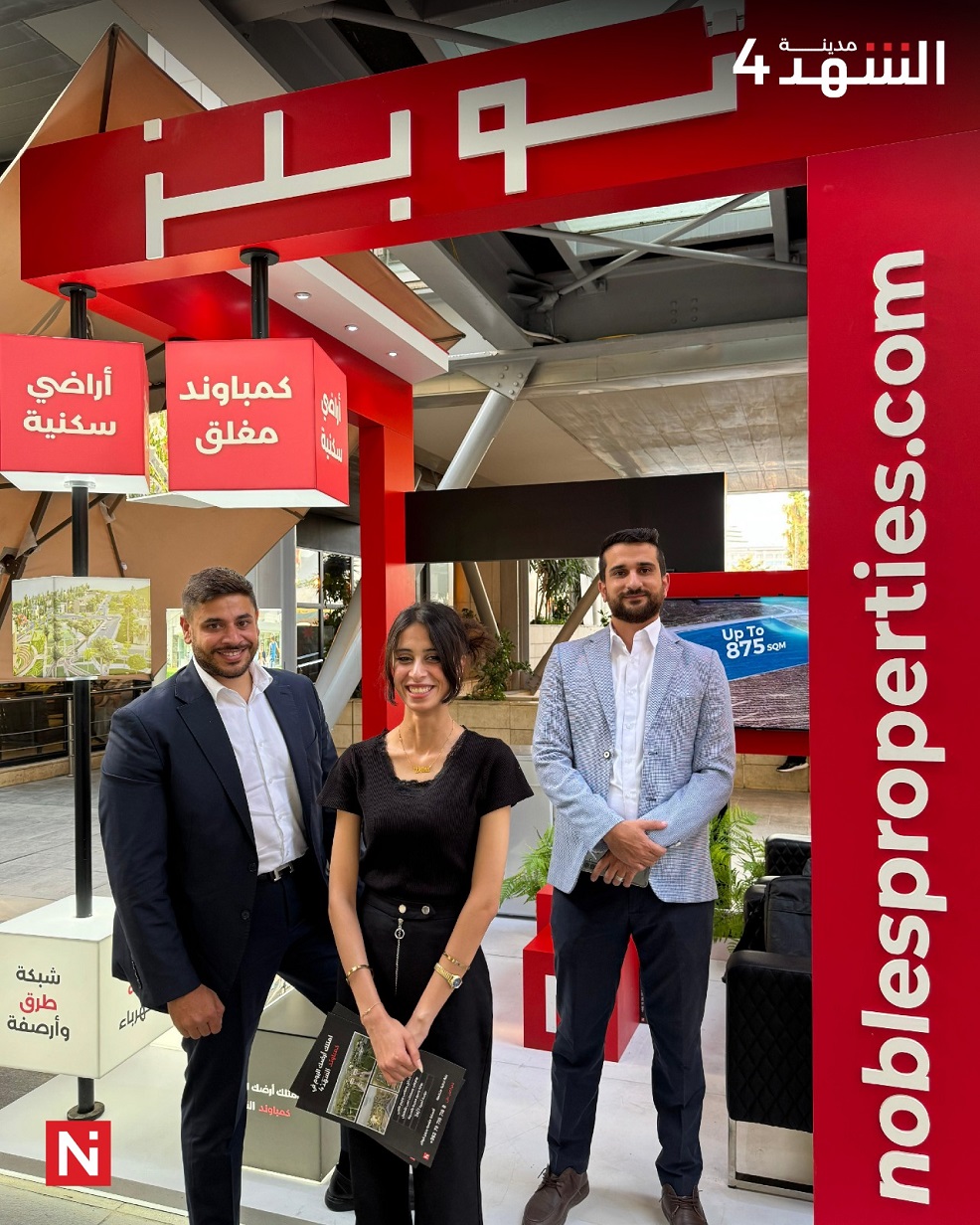 ويستقبل مستشارو نوبلز العقارية الزوار في الجناح لتقديم جلسات استشارية فردية، تهدف إلى التعريف بالعروض وخطط الاستثمار العقاري المتاحة ، إضافة إلى تزويد العملاء برؤى معمقة حول سوق العقارات الأردني بشكل عام.