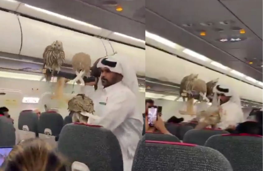 مواطن خليجي يصطحب صقورًا على متن طائرة