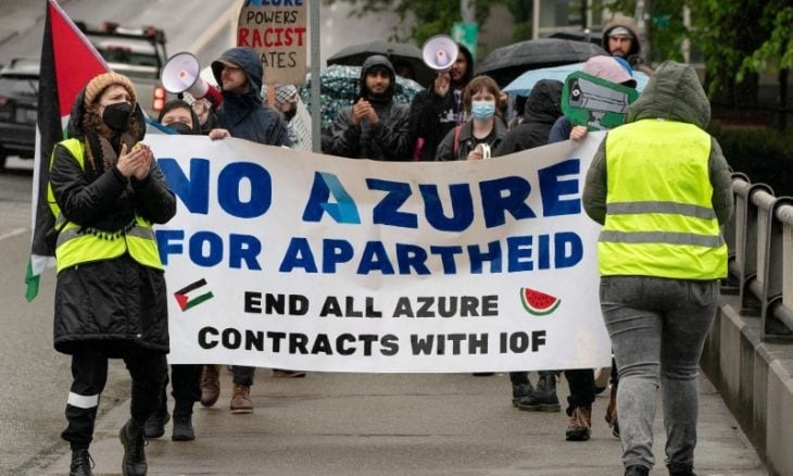وطالبت مجموعة (نو آزور فور أبارتايد)، التي يشير اسمها إلى برمجيات “آزور” التابعة لمايكروسوفت، الشركة بقطع علاقاتها بإسرائيل ودفع تعويضات للفلسطينيين.