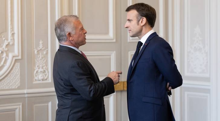 السوسنة - بحث جلالة الملك عبدﷲ الثاني خلال اتصال هاتفي مع الرئيس الفرنسي إيمانويل ماكرون، اليوم الاثنين، أبرز التطورات في الإقليم، لا سيما في قطاع غزة والضفة الغربية.