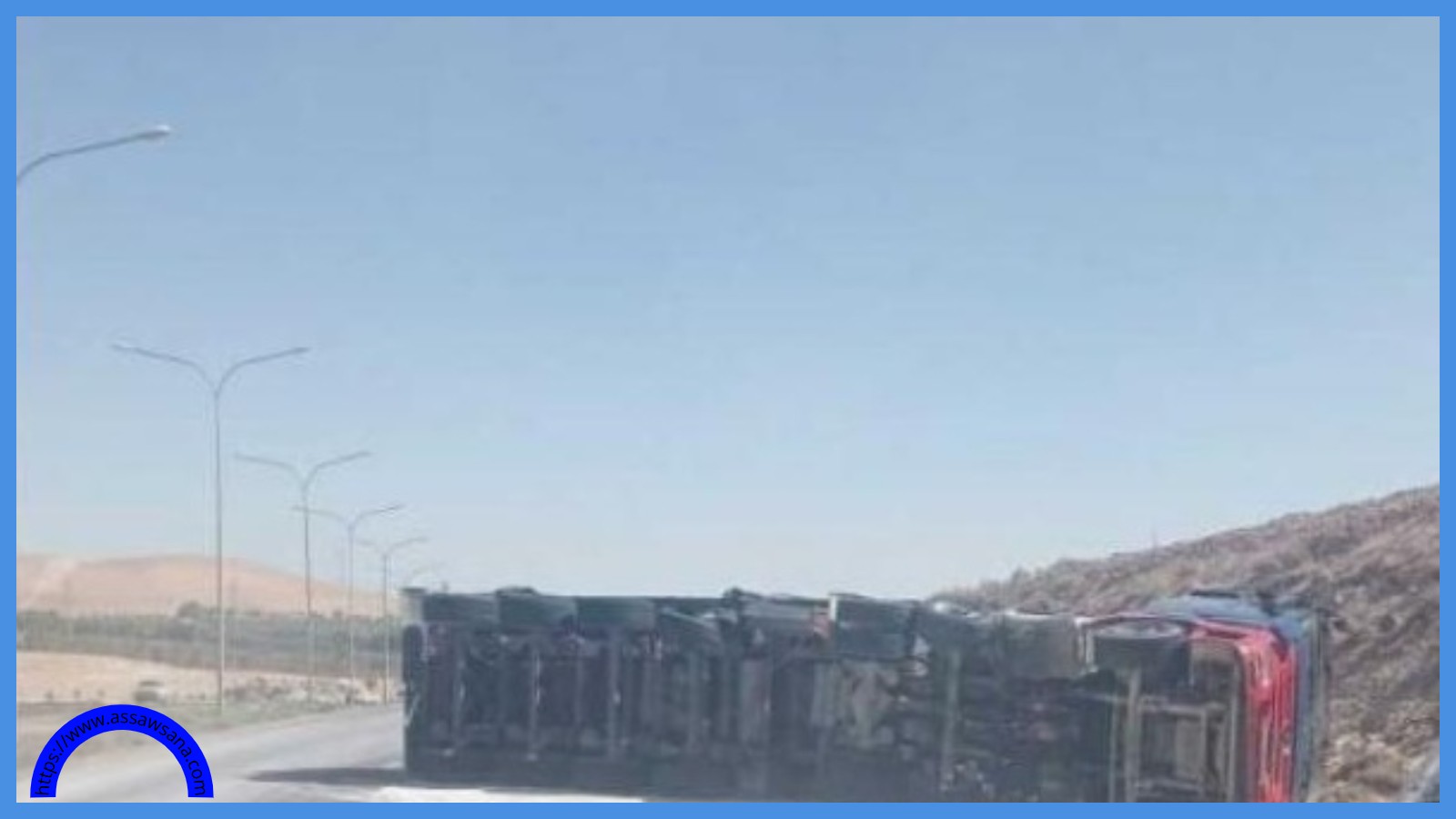 انقلاب شاحنة يعيق طريق العقبة - معان