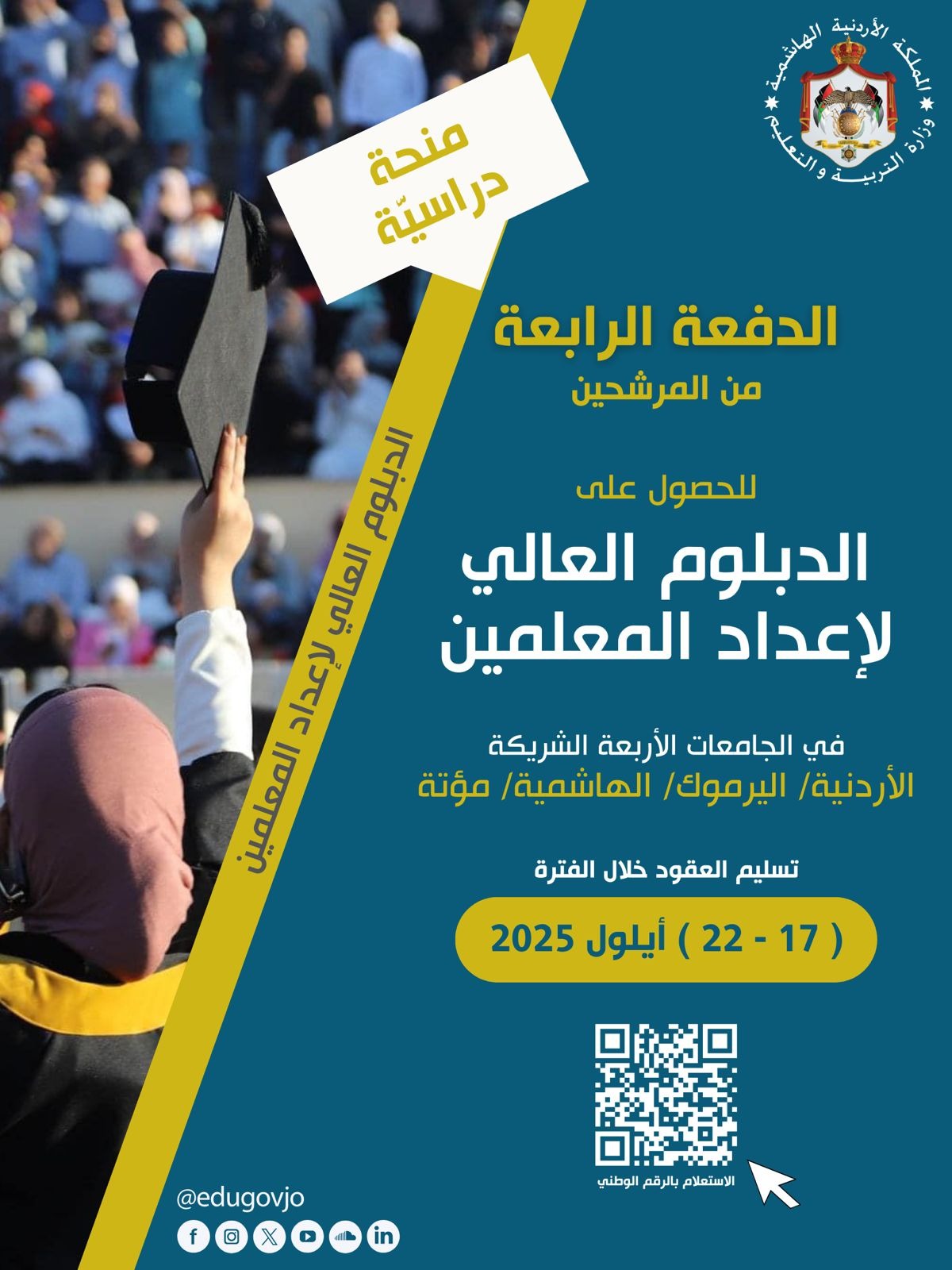 السوسنة - أعلنت وزارة التربية والتعليم عن أسماء المرشحين للدفعة الرابعة من بعثات برنامج الدبلوم العالي لإعداد المعلمين للعام الجامعي 2025/2026، والذي ينتهي بالتعيين ويُعقد في أربع جامعات شريكة: