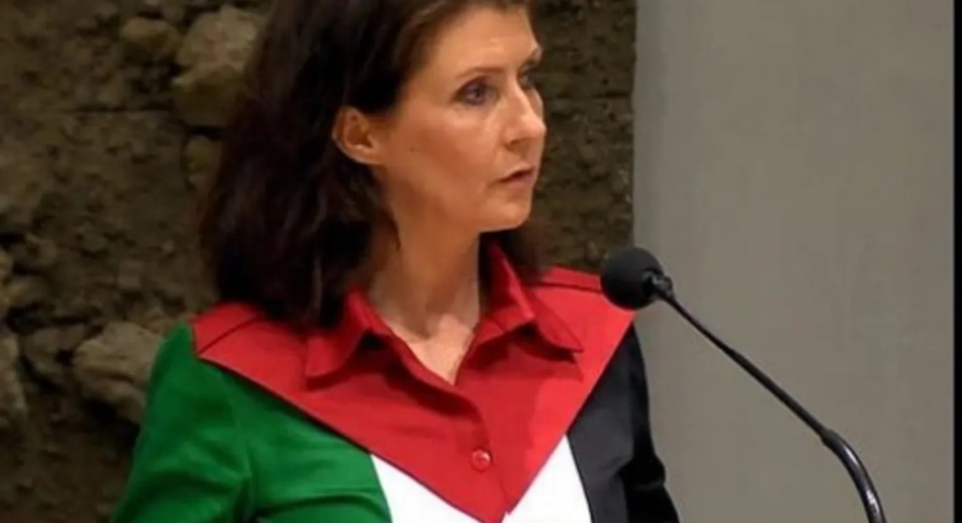 السوسنة - طُلب من النائبة الهولندية إيستير أوويهانت مغادرة قاعة مجلس النواب، بعد ظهورها خلال مناقشة الميزانية مرتدية قميصًا يحمل ألوان العلم الفلسطيني، في خطوة أثارت جدلًا واسعًا داخل البرلمان الهولندي.