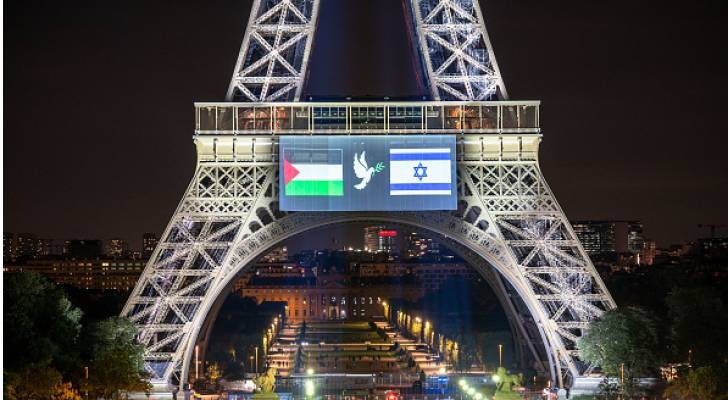 وفي رسالة تهدف إلى التأكيد على التوازن، أُضيء برج إيفل باللون الأبيض، وعُرضت على شاشته الضخمة صورة لعلم فلسطين إلى جانب علم كيان الاحتلال، تفصل بينهما حمامة ترمز للسلام، في لفتة تعكس الموقف الرسمي للحكومة الفرنسية التي تسعى لإدارة هذا التحول الدبلوماسي الكبير بحذر، وتجنب تأجيج التوترات الداخلية في بلد يضم أكبر جالية يهودية ومسلمة في أوروبا.