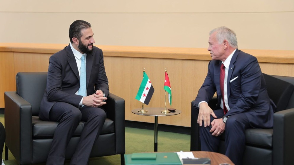السوسنة - التقى جلالة الملك عبدﷲ الثاني في نيويورك، الثلاثاء، الرئيس السوري أحمد الشرع، بحضور سمو الأمير الحسين بن عبدﷲ الثاني ولي العهد.
