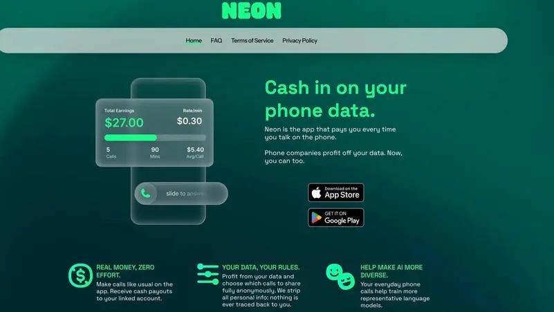 التطبيق، الذي يحمل اسم "نيون"، يقدّم نفسه كوسيلة جديدة لـ"كسب المال السهل"، واعدًا المستخدمين بتحقيق مئات أو حتى آلاف الدولارات سنويًا مقابل مشاركة محادثاتهم الصوتية.