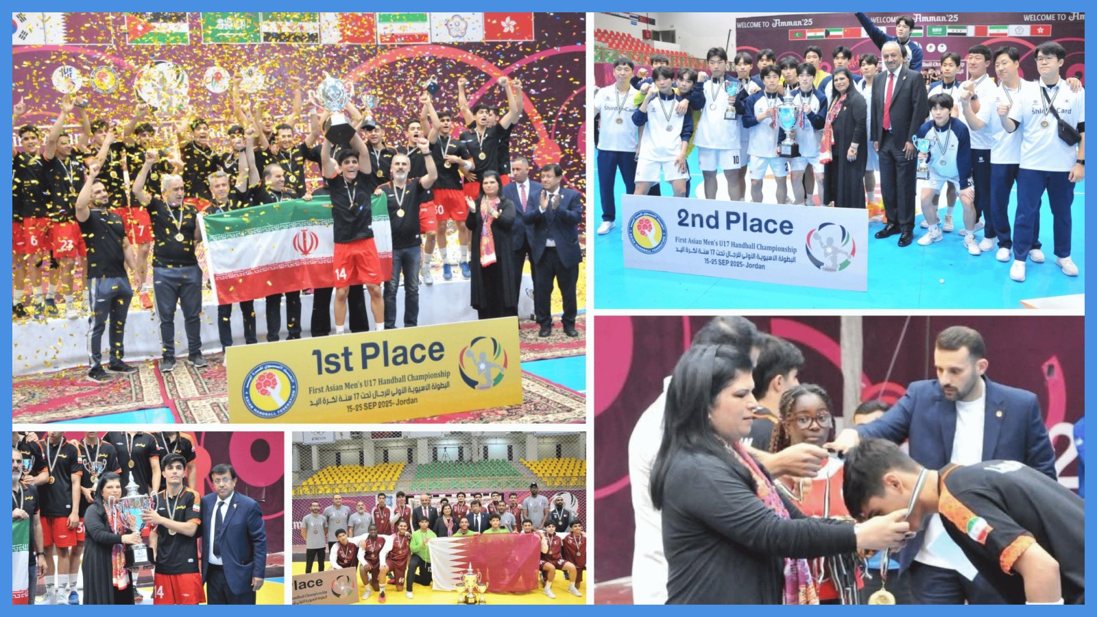 توجت سمو الأميرة سمية بنت الحسن، الرئيسة الفخرية للاتحاد الأردني لكرة اليد، إلى جانب رئيس الاتحاد الآسيوي بدر ذياب المنتخب الإيراني الفائز بلقب البطولة الآسيوية الأولى تحت 17 عاماً، والمؤهلة لبطولة العالم 2025.