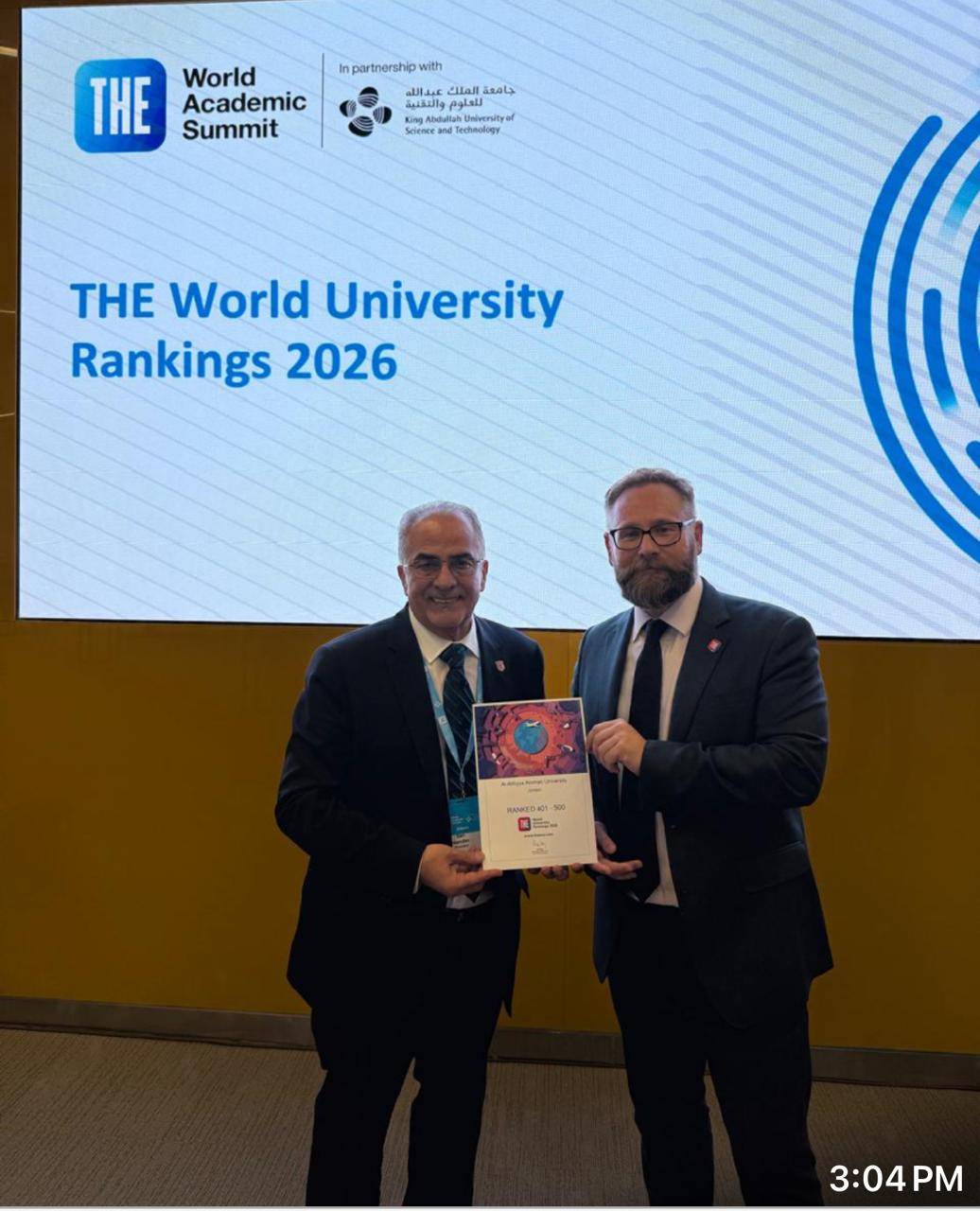 وأكد كلا من رئيس الجامعة الاستاذ الدكتور ساري حمدان والدكتور ماهر الحوراني رئيس هيئه المديرين أن هذا التقدم يعكس التزام الجامعة برسالتها نحو التميز والإبداع والابتكار، مشيران إلى أن الاستثمار في البحث العلمي والكوادر الأكاديمية المتميزة كان العامل الرئيس وراء هذا الإنجاز الذي يعزز مكانة الجامعة على الخارطة العالمية للتعليم العالي.
