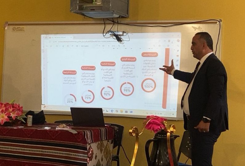 وقدمت الممرضتان ختام الخطاطبة وسارة المعايطة، من فريق البرنامج الأردني لسرطان الثدي، شرحا حول المرض، وعوامل خطورته، وطرق الفحص الذاتي والسريري، إضافة إلى أهمية التصوير الشعاعي الوقائي (الماموغرام).