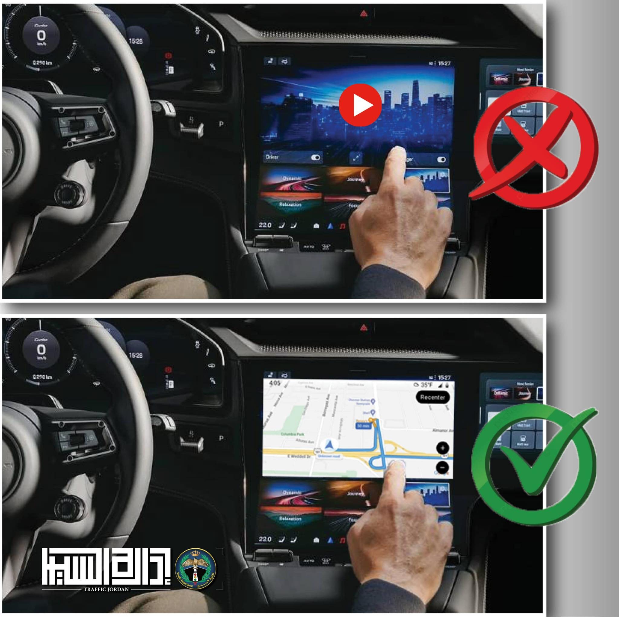 إدارة السير توضح شروط استخدام شاشات المركبات