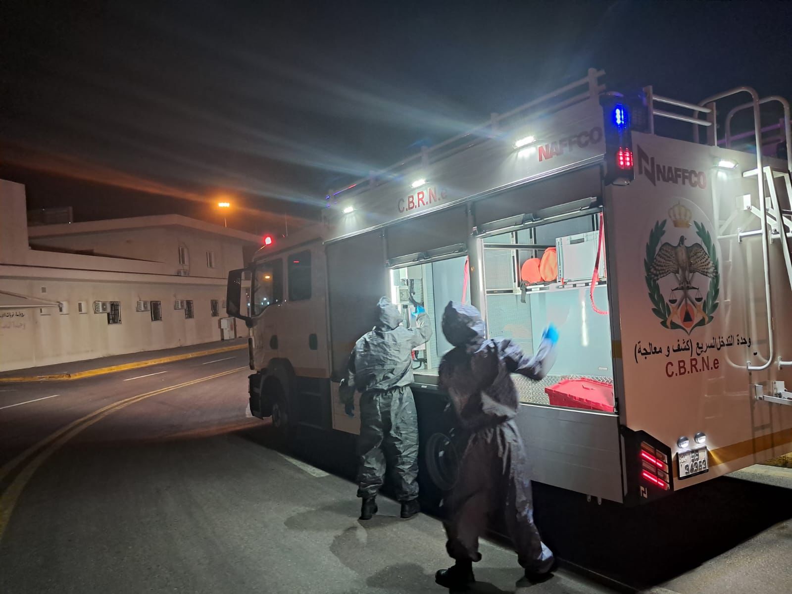 فريق المواد الخطرة في الدفاع المدني وصل فور تلقي البلاغ وقام بتطويق موقع التسرب واتخذ كافة الإجراءات العملياتية اللازمة وفق البروتوكلات بمثل هذه الحالات ، والتأكد من نسبة الغازات في الجو .