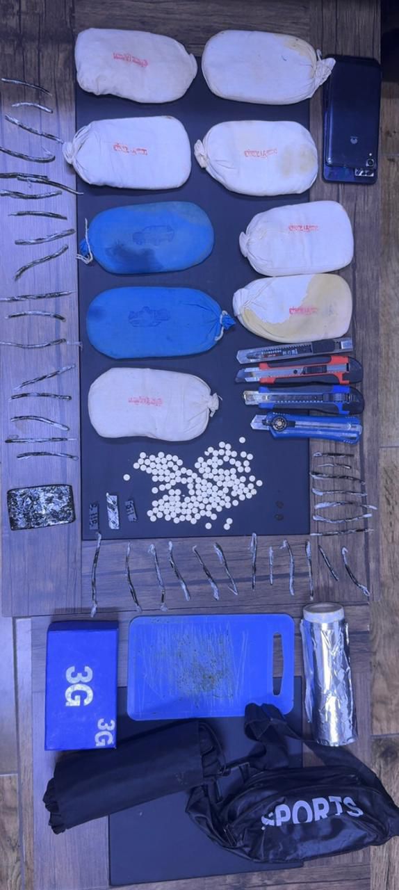 وفي محافظة العقبة، وبعد متابعة حثيثة لأحد تجار المخدرات والتأكد من حيازته وتخزينه كمية كبيرة من المواد المخدرة، تمت مداهمته وإلقاء القبض عليه، وبالتحقيق معه جرى تحديد مكان إخفاء المواد المخدرة في منطقة صخرية وعرة. وبتفتيش الموقع، تم ضبط 36 كفًّا من الحشيش كان قد أخفاها هناك.