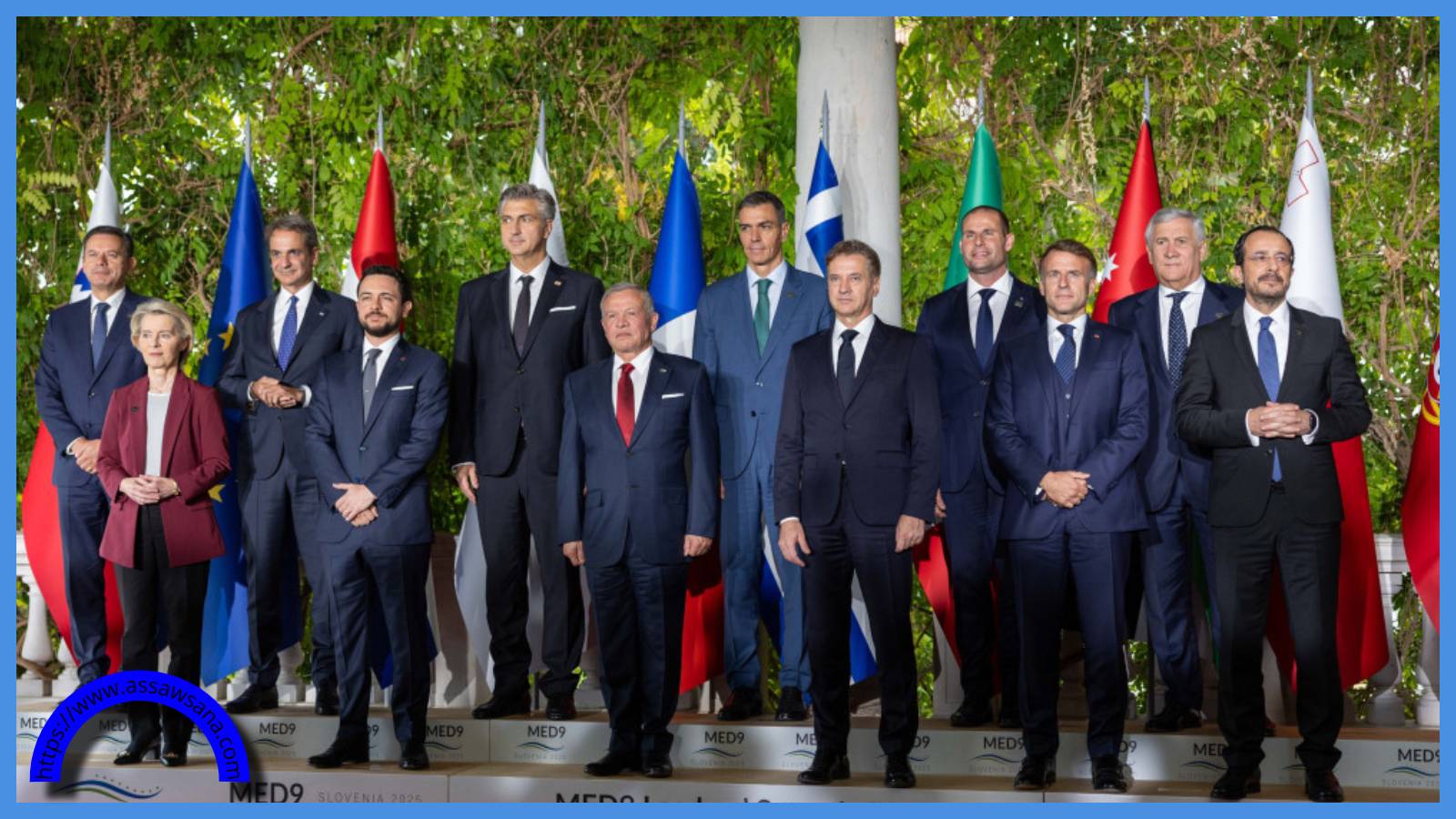 بدعوة من رئيس وزراء سلوفينيا روبرت غولوب، شارك جلالة الملك عبدالله الثاني ابن الحسين، ملك المملكة الأردنية الهاشمية، في اجتماع مع رؤساء دول وحكومات دول جنوب الاتحاد الأوروبي "ميد 9"، والتي تشمل كرواتيا وقبرص وفرنسا واليونان ومالطا والبرتغال وسلوفينيا وإسبانيا ونائب رئيس وزراء إيطاليا. وتناول الاجتماع الوضع في الشرق الأوسط، ولا سيما آخر التطورات في غزة.