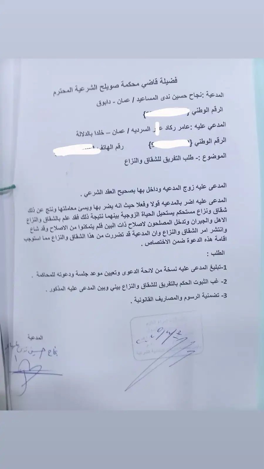 وثائق رسمية تكشف مبادرة نجاح المساعيد بالطلاق