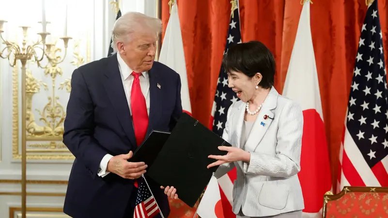 السوسنة - استقبلت العاصمة اليابانية طوكيو الرئيس الأميركي دونالد ترامب، في أول لقاء رسمي له مع رئيسة الوزراء الجديدة ساناي تاكايشي، حيث تبادل الطرفان رسائل ودية وتصريحات تؤكد متانة التحالف بين البلدين.