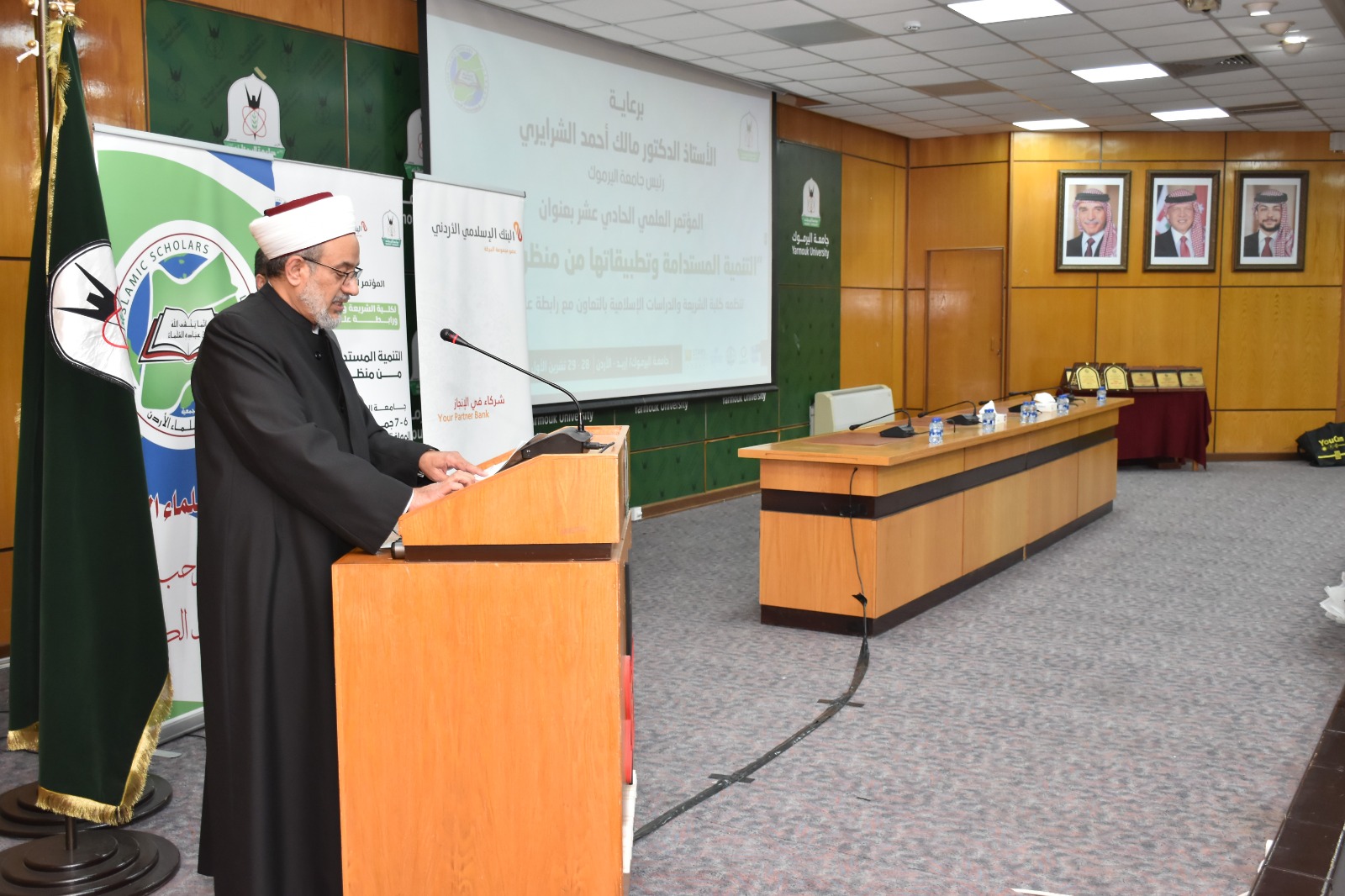 وأكد على أن "اليرموك" تواكبُ على الدوام أهم القضايا الحادثة، وتؤدي دورها الريادي والبحثي لتكون منارة من منارات الفكر الرشيد المتجدد، لافتا إلى أن كلية الشريعة والدراسات الإسلامية، تضطلع بهذا الدور الشرعي الرائد، حيث تعقد شراكتها مع رابطة علماء الأردن لتعالج موضوعا يتبوّأ مكانة وطنية وعالمية، ألا وهو التنمية المستدامة، مما يمكنها من ان تنهض بمسؤوليتها الأخلاقية في ترجمة رسالة الجامعة وأهدافها في ترك بصمة على جبين العِلم والفكر.