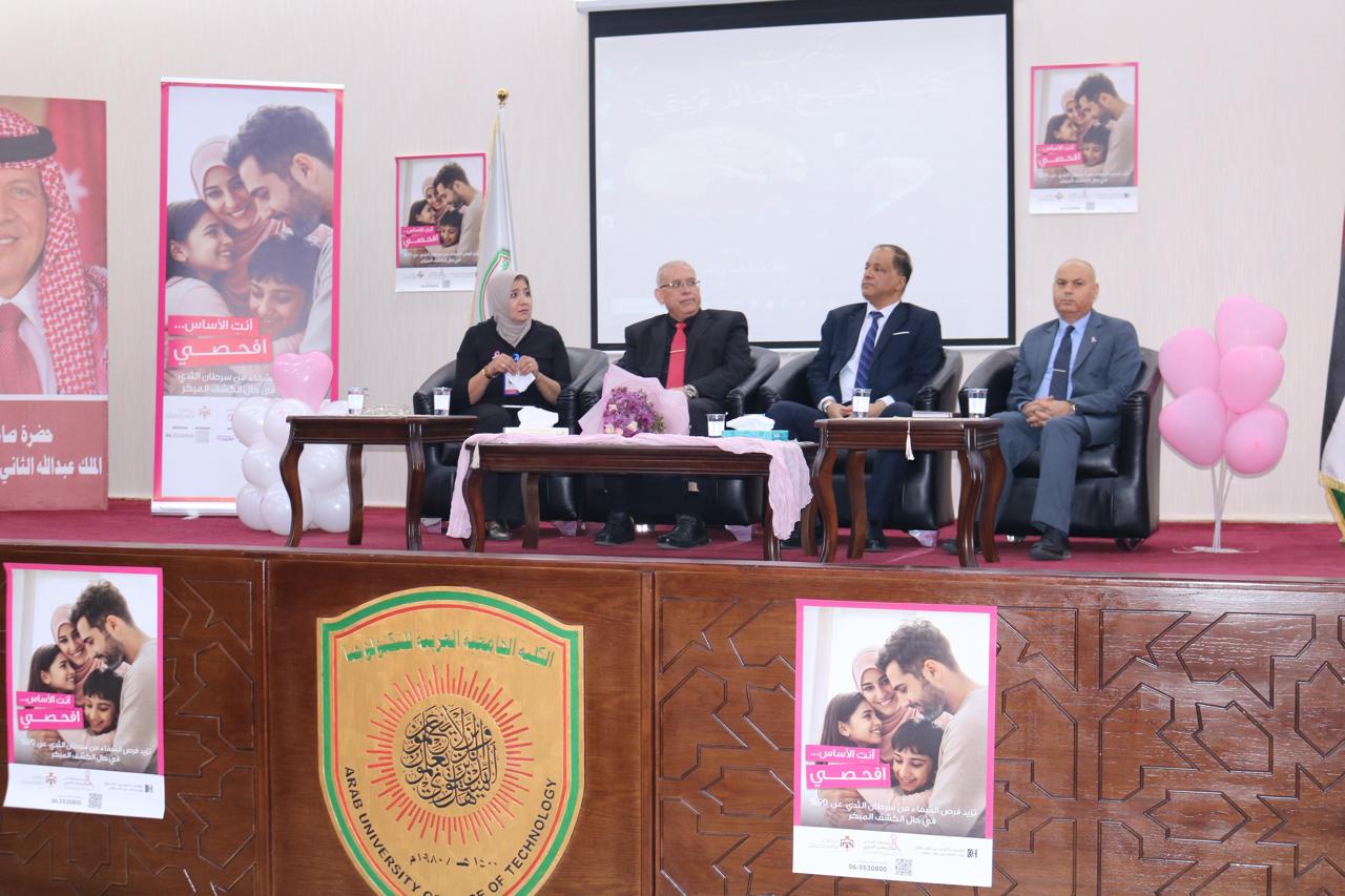 نظّمت الكلية الجامعية العربية للتكنولوجيا، بالتعاون مع البرنامج الأردني لسرطان الثدي، فعالية توعوية بمناسبة شهر التوعية بسرطان الثدي "أكتوبر الوردي".