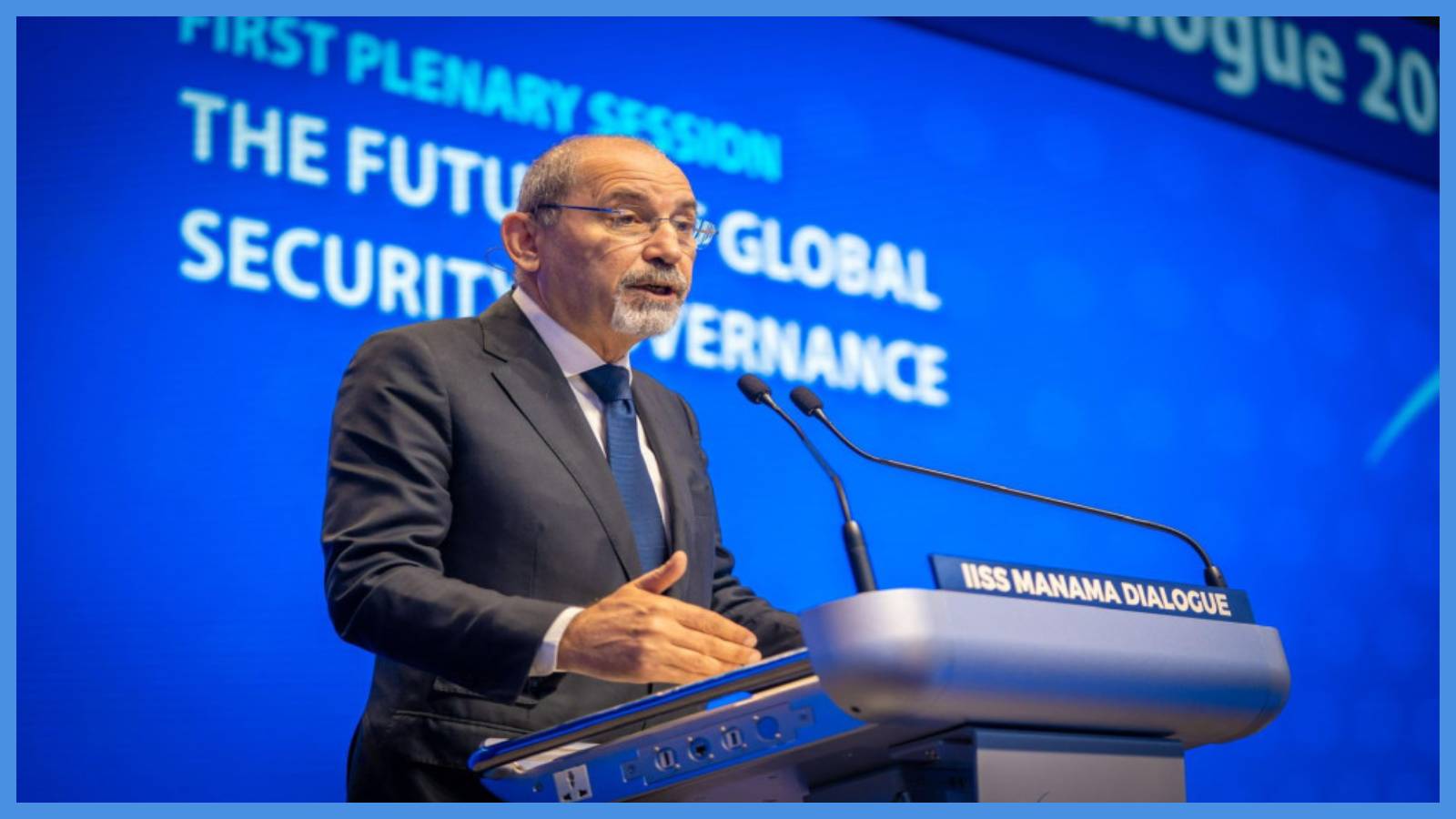 شارك نائب رئيس الوزراء ووزير الخارجية وشؤون المغتربين أيمن الصفدي السبت، في جلسة حوارية بعنوان: "مستقبل الحوكمة الأمنية العالمية"، ضمن أعمال الدورة الحادية والعشرين لحوار المنامة ٢٠٢٥.