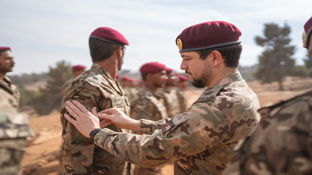 السوسنة - تابع سمو الأمير الحسين بن عبدﷲ الثاني ولي العهد، اليوم الأحد، التمرين النهائي لدورة القوات الخاصة التي عقدتها الكتيبة الخاصة/101، إحدى وحدات قوات الملك عبدﷲ الثاني الخاصة الملكية، والذي يخدم سموه حاليا فيها مساعدا لقائد الكتيبة.