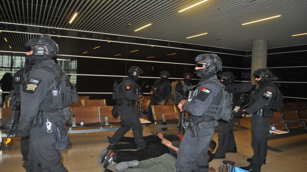 السوسنة - نفذت مديرية أمن وحماية المطارات، الثلاثاء، تمريناً أمنياً، بمشاركة الكتيبة الخاصة/71 والأجهزة الأمنية العاملة في مطار الملكة علياء الدولي، بحضور مدير أمن وحماية المطارات.