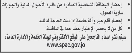 دعت وزارة التنمية الاجتماعية ووزارة الزراعة المتقدمين الذين انطبقت عليهم شروط الإعلان المنشور سابقًا للتوجه إلى مركز تقييم الكفايات في هيئة الخدمة المدنية، الكائن في عمان طبربور، لحضور الامتحان التنافسي الإلكتروني.