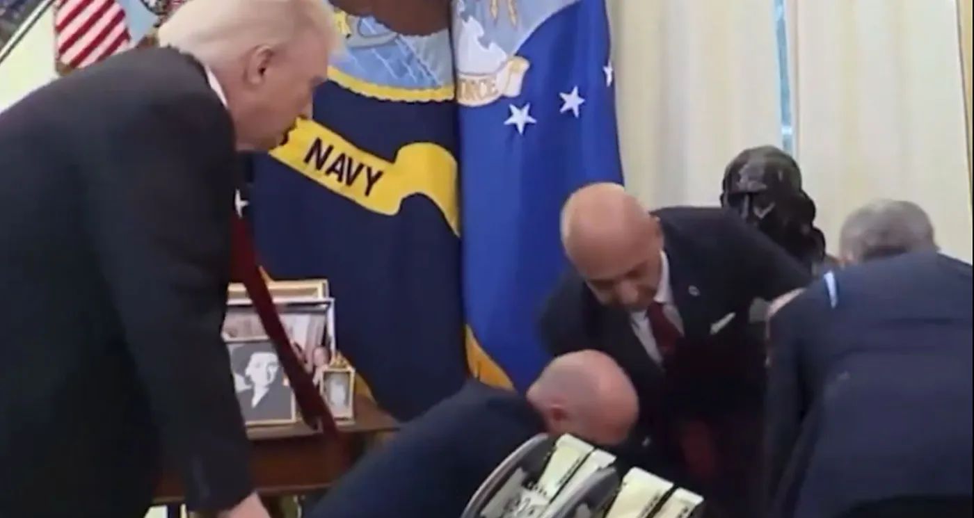 وسقط رجل كان يقف خلف ترامب في المكتب البيضاوي، خلال مؤتمر ضم عددًا من مدراء شركات الأدوية، مغشيًا عليه أمام الكاميرات، بينما كان ديفيد ريكس، الرئيس التنفيذي لشركة "إيلي ليلي"، يتحدث عن صفقة تتعلق بأدوية إنقاص الوزن.