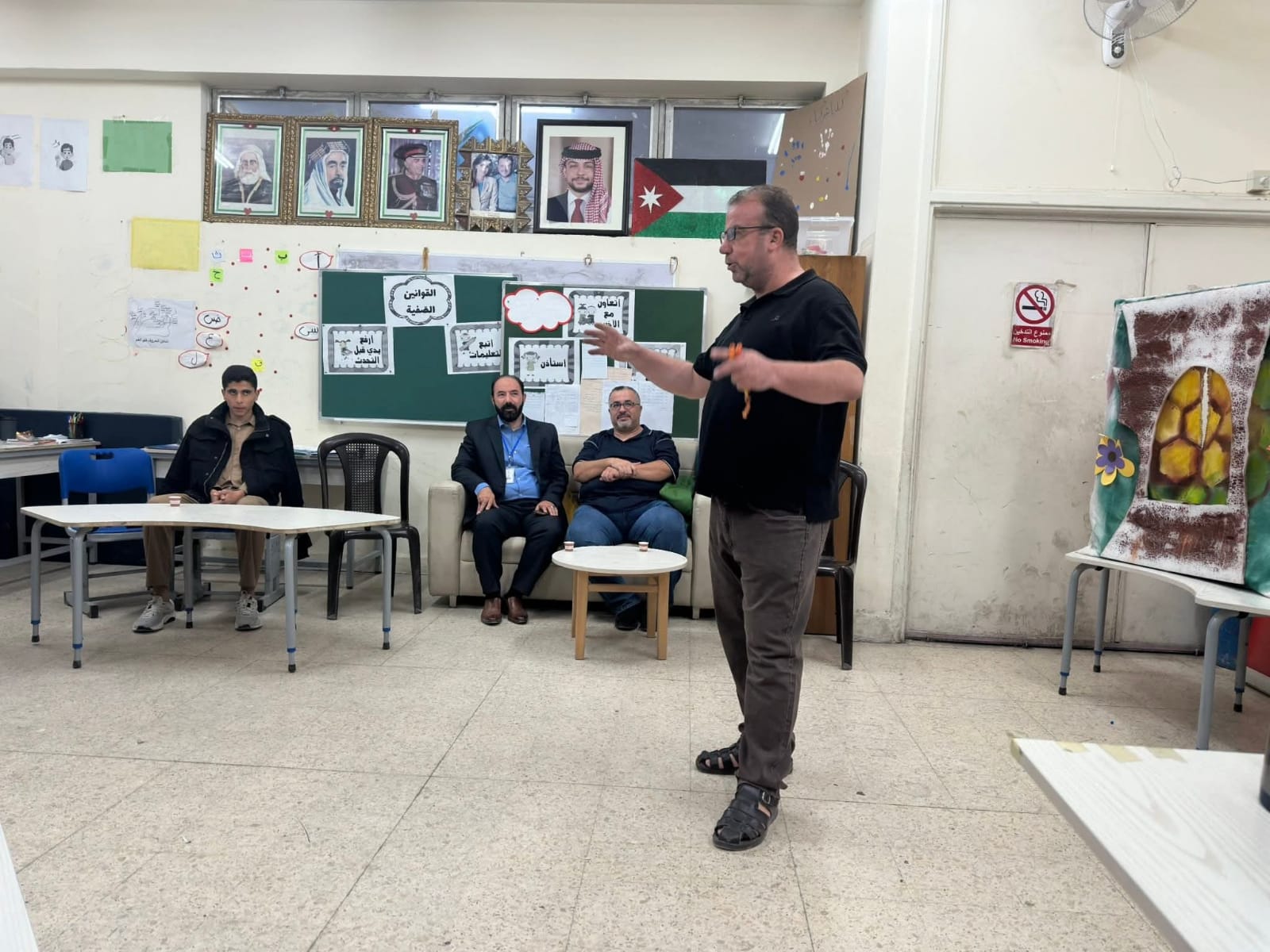 كما شهد اليوم عرضاً لمجموعة من المسرحيات التفاعلية التي تناولت قضايا تربوية هادفة مثل التنمر والنظافة والمحافظة على ممتلكات المدرسة والصدق والأمانة والتعاون وحب المدرسة والوطن وتميز العرض بأسلوب المسرح التربوي بالدمى الذي يعزز التواصل اللغوي والنطقي لدى الطلبة ويغرس فيهم القيم والسلوكيات الإيجابية بإشراف المخرج المسرحي عيسى الجراح وفريق المسرح المدرسي.