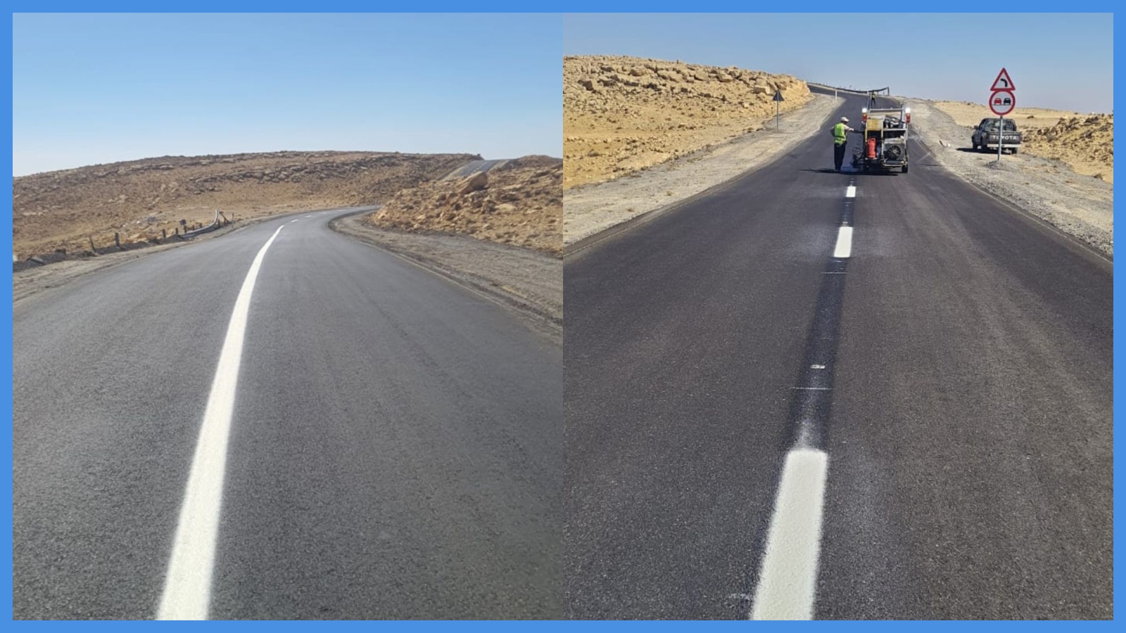 وأضاف إن الأعمال شملت معالجة الأجزاء المتضررة على امتداد 3.5 كم، من نقطة دلاغة وصولاً إلى منطقة رأس النقب في محافظة معان، باستخدام خلطة إسفلتية جديدة للأجزاء المتضررة من الطريق، مبيناً أن الأعمال تضمنت كشط الخلطة الإسفلتية القديمة وإجراء عمليات الحقن والترقيعات اللازمة، وإعادة رصف الطريق بطبقة إسفلتية جديدة لضمان جودة التحسين واستدامة الطريق.