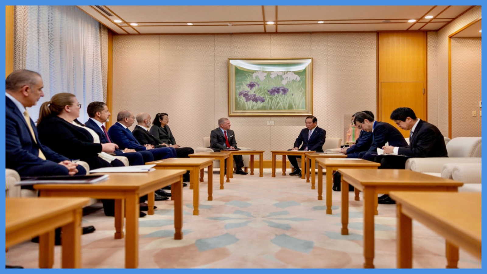 عقد جلالة الملك عبدﷲ الثاني، الثلاثاء، لقاءات منفصلة في العاصمة طوكيو، مع رئيس مجلس النواب الياباني فوكوشيرو نوكاجا، ورئيس مجلس المستشارين الياباني ماساكازو سيكيغوتشي، ورئيس لجنة الصداقة البرلمانية الأردنية اليابانية كازونوري تاناكا.