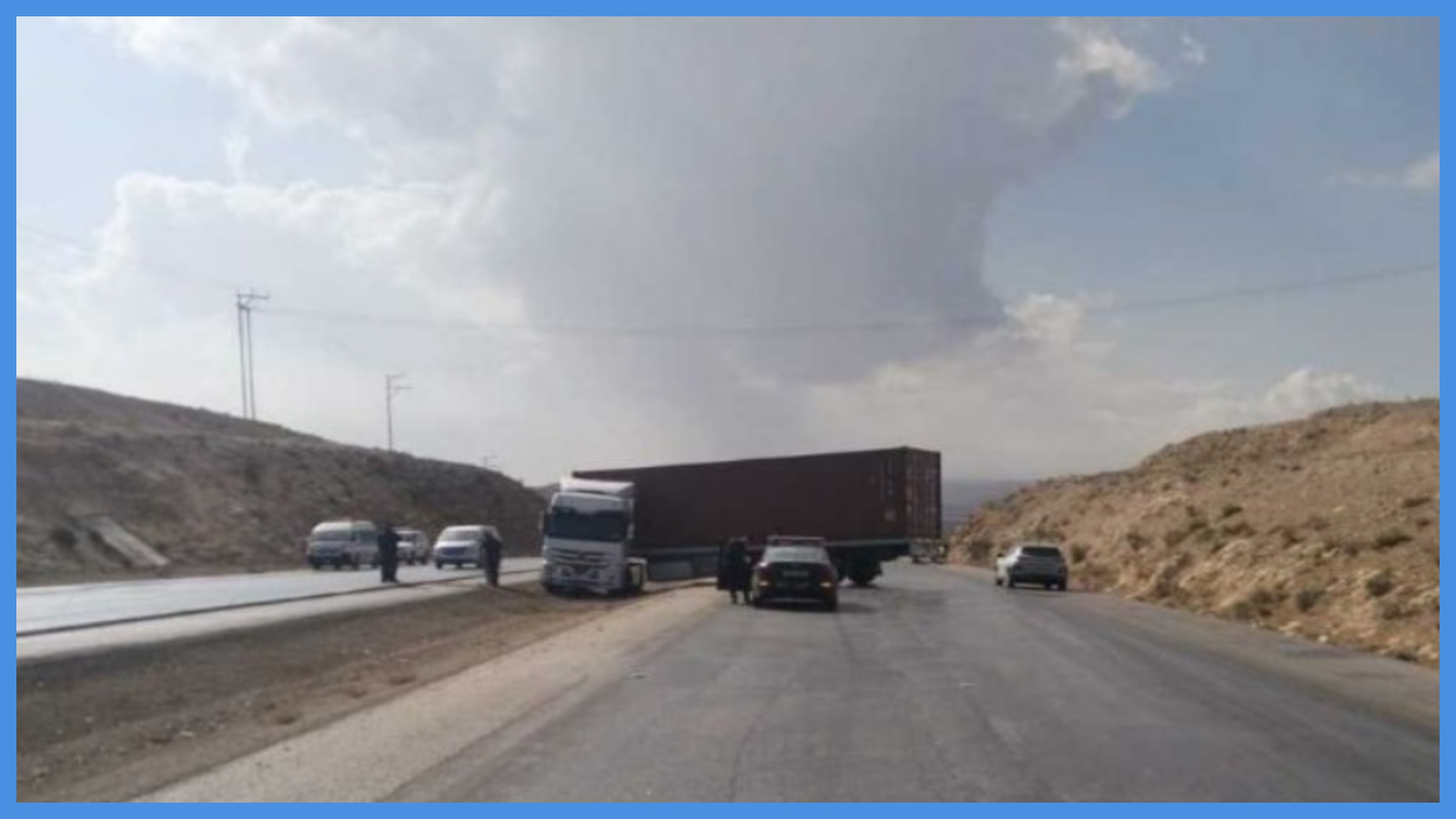 التعامل مع حادث تريلا يعيق السير على طريق المفرق الزرقاء