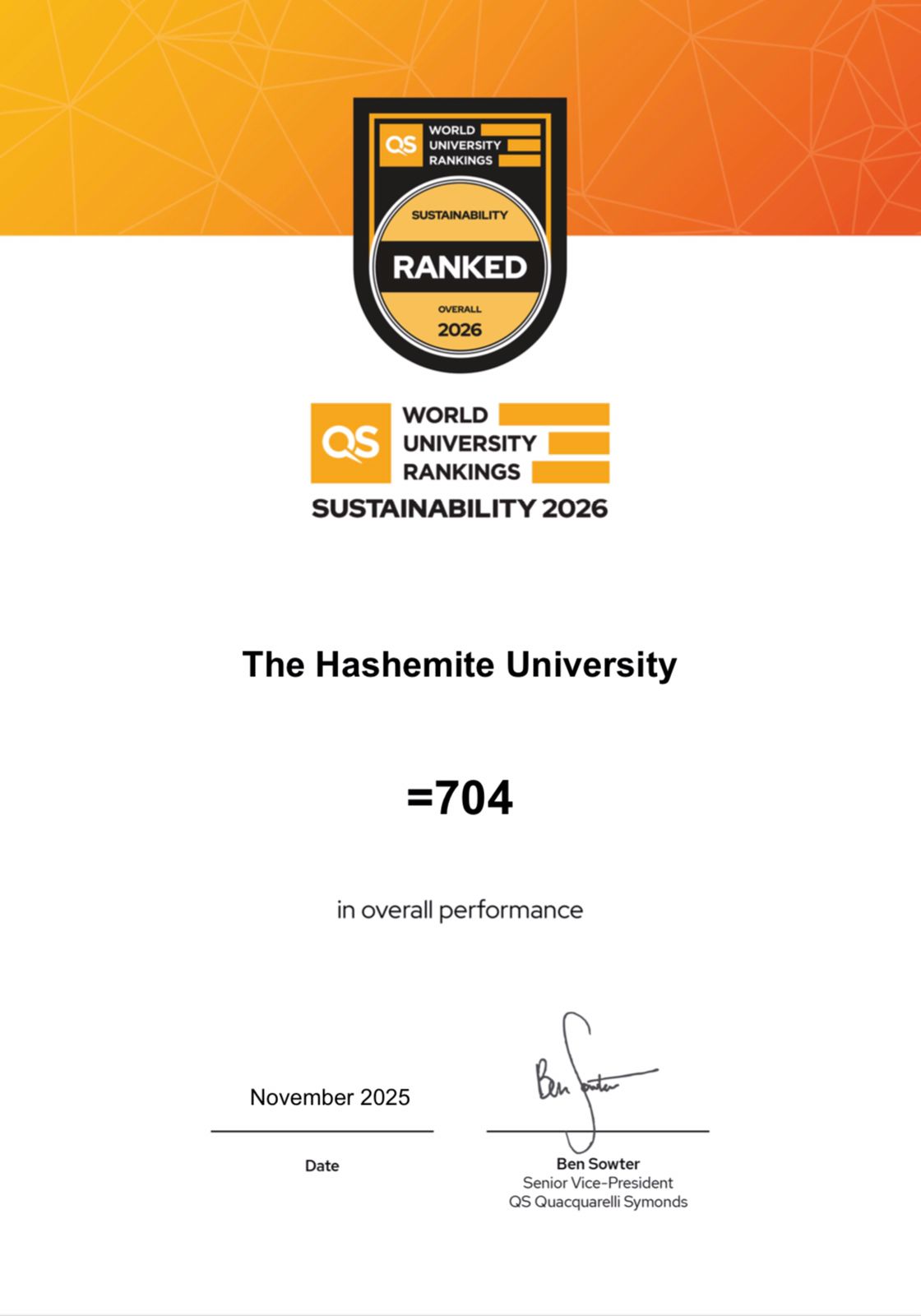 السوسنة - في إنجاز أكاديمي نوعي يعكس التزامًا مؤسسيًا راسخًا، حققت الجامعة الهاشمية قفزة في تصنيف QS العالمي للاستدامة لعام 2026، متقدمة 164 مرتبة عالميًا عن ترتيبها في العام السابق لتصل إلى المركز 704 عالميًا والثالث محليًا.