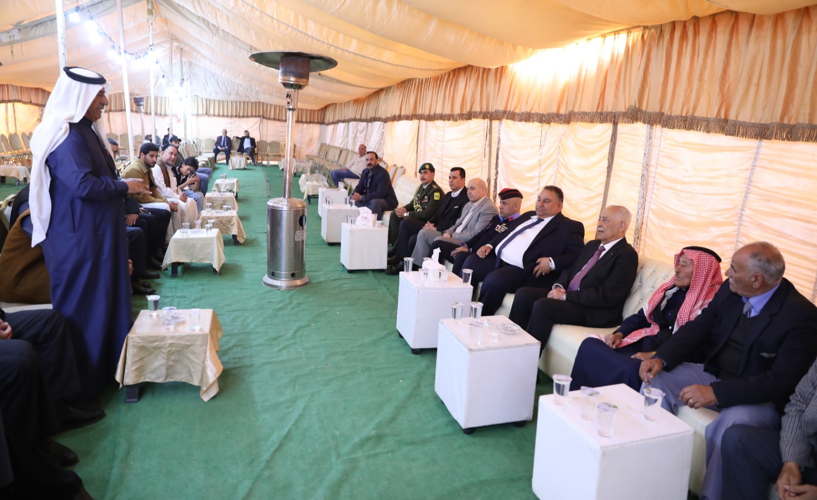 السوسنة - مندوبا عن جلالة الملك عبدالله الثاني وسمو الأمير الحسين بن عبدالله الثاني، ولي العهد، قدم رئيس الديوان الملكي الهاشمي يوسف حسن العيسوي، اليوم الأربعاء، واجب العزاء إلى عشائر القاضي والشرايعة/عباد والمجالي ومنّاع.
