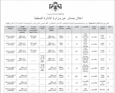 السوسنة - أعلنت مؤسسات حكومية اليوم الاثنين، عن وظائف شاغرة ضمن شروط معينة.