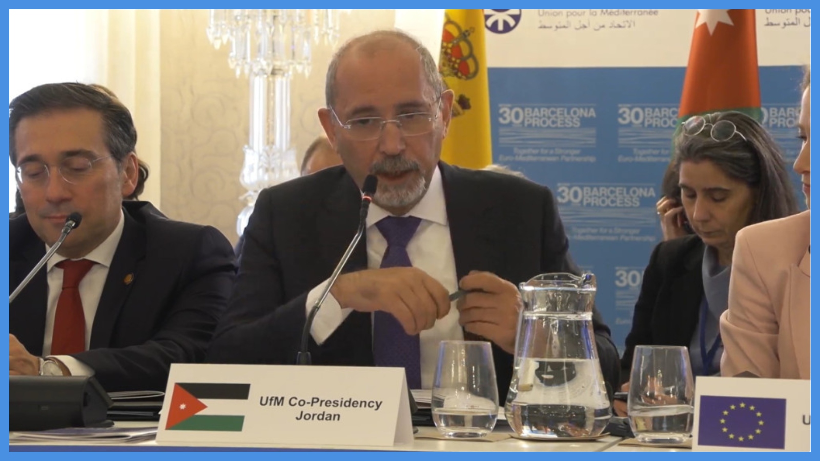 سلط نائب رئيس الوزراء ووزير الخارجية وشؤون المغتربين أيمن الصفدي، الضوء على معاناة الفلسطينيين في غزة والضفة المحتلة، وذلك خلال ترؤسه ونائب رئيسة المفوضيّة الأوروبية والممثّلة العليا للاتحاد الأوروبي للشؤون الخارجية والسياسة الأمنية كايا كالاس أعمال المنتدى الإقليمي العاشر لوزراء خارجية الدول الأعضاء في الاتحاد من أجل المتوسط، في برشلونة، الجمعة.