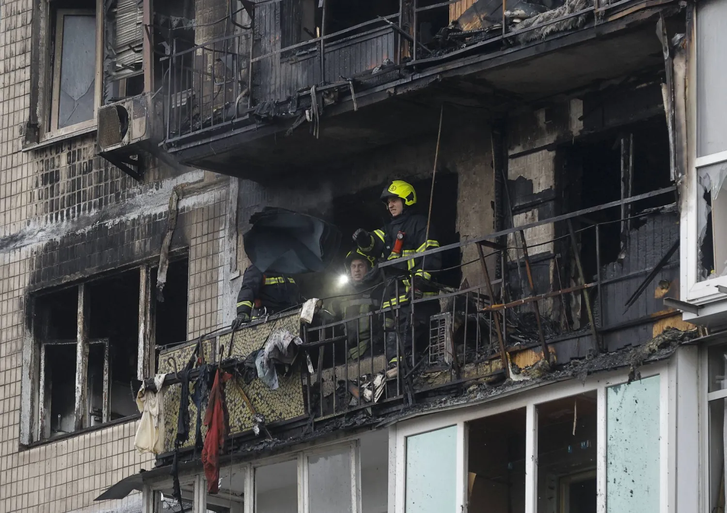 آثار دمار خلّفها قصف روسي على بناية سكنية في كييف يوم 29 نوفمبر (إ.ب.أ)