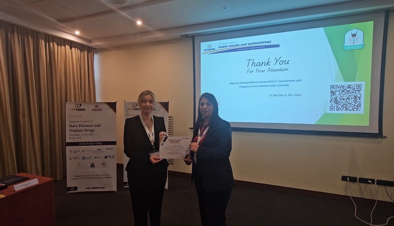 السوسنة - شاركت عضو هيئة التدريس في كلية التربية البدنية وعلوم الرياضة بجامعة اليرموك الدكتورة مريم أحمد أبو عليم، في المؤتمر الأوروبي الثاني للصحة العامة وعلم الوبائيات، الذي عُقد في مدينة روما الإيطالية.