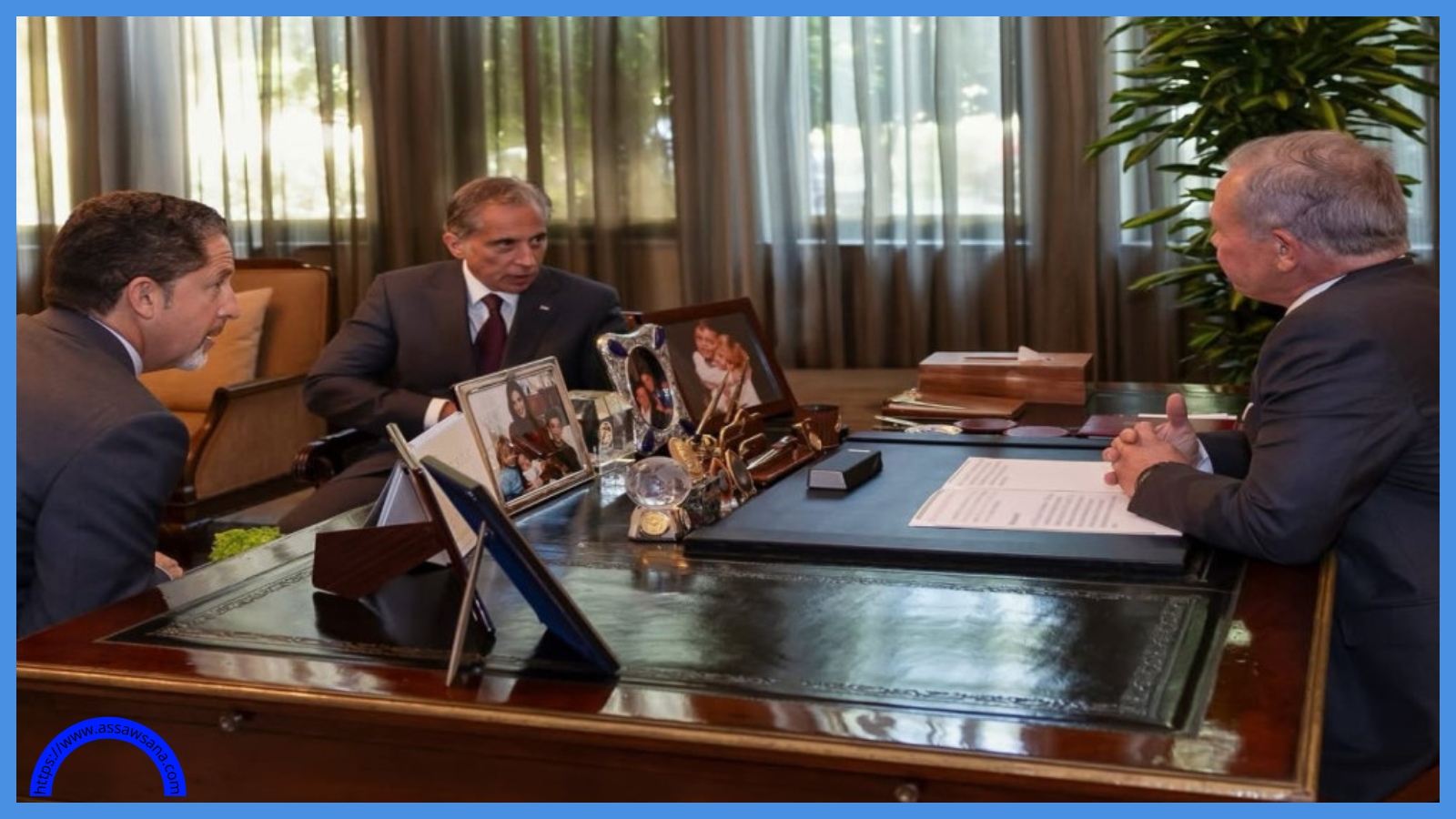 نشر الديوان الملكي الهاشمي، الثلاثاء، صورة من اجتماع لجلالة الملك عبدالله الثاني، برئيس الوزراء جعفر حسان، بحضور مدير مكتب جلالته، علاء البطاينة.