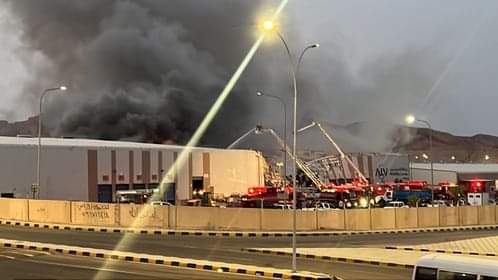 ما قصة حريق مستودع قرية العقبة اللوجستية