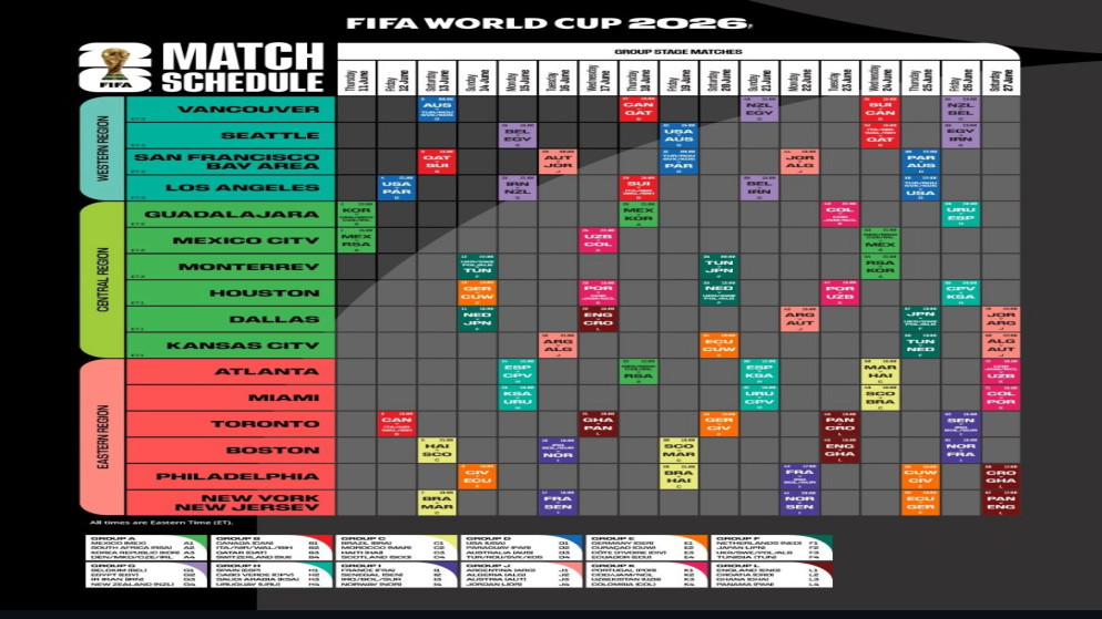 وسيستهل المنتخب الوطني مشواره في البطولة بمواجهة منتخب النمسا يوم 16 حزيران 2026 في سان فرانسيسكو، ثم يلتقي نظيره الجزائري في 22 حزيران على ذات الملعب.