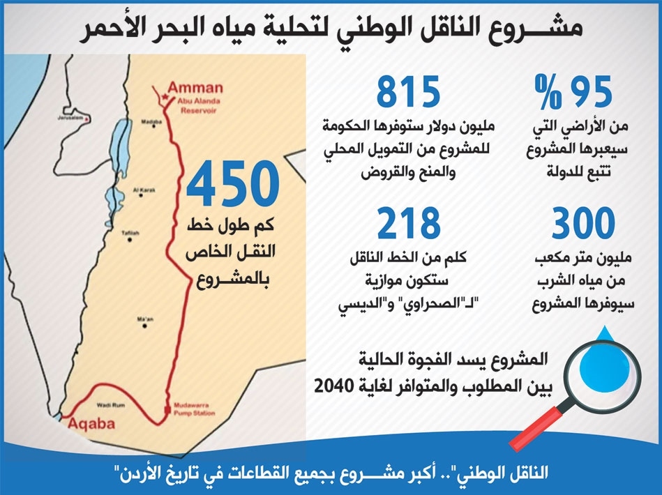يمثل الناقل الوطني أكبر مشروع مائي في الأردن بعد مشروع جر مياه الديسي، ويضع المملكة على مسار جديد نحو الأمن المائي المستدام، مع تقليص الفجوة بين العرض والطلب وتحسين انتظام التزويد في المحافظات.