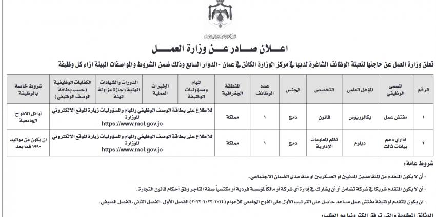 وظائف شاغرة في وزارة العمل والأحوال المدنية .. تفاصيل