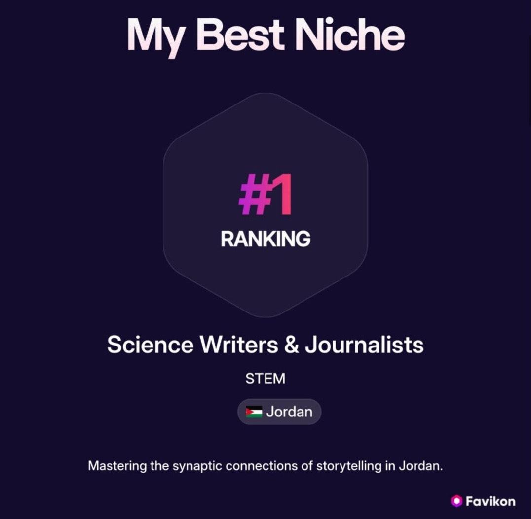 بحسب تصنيف منصة Favikon العالمية المتخصصة بتقييم المؤثرين وصنّاع المحتوى في مجالات العلوم والتقنية.