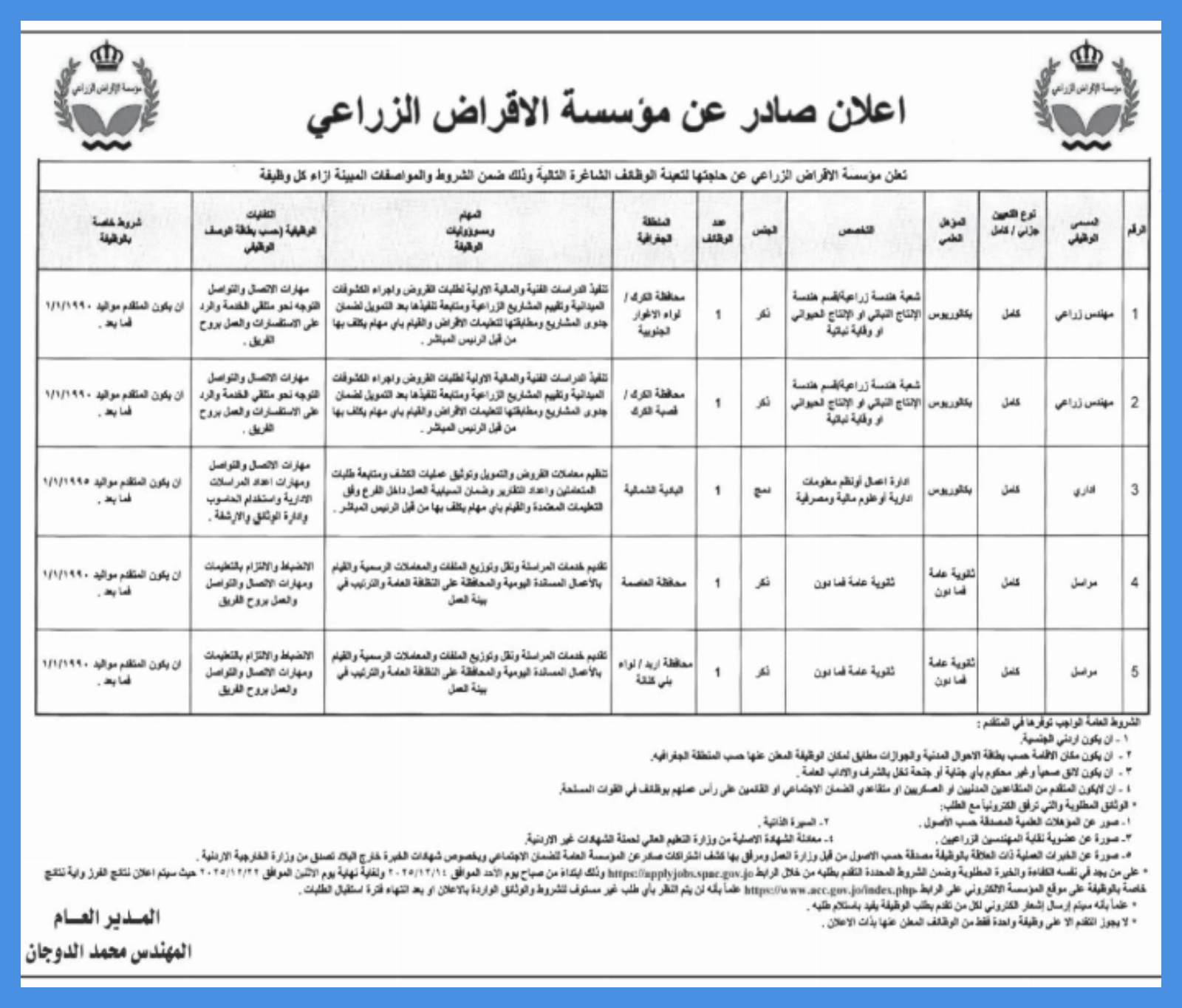 وظائف في مؤسسة الاقراض الزراعي .. الشروط والتفاصيل