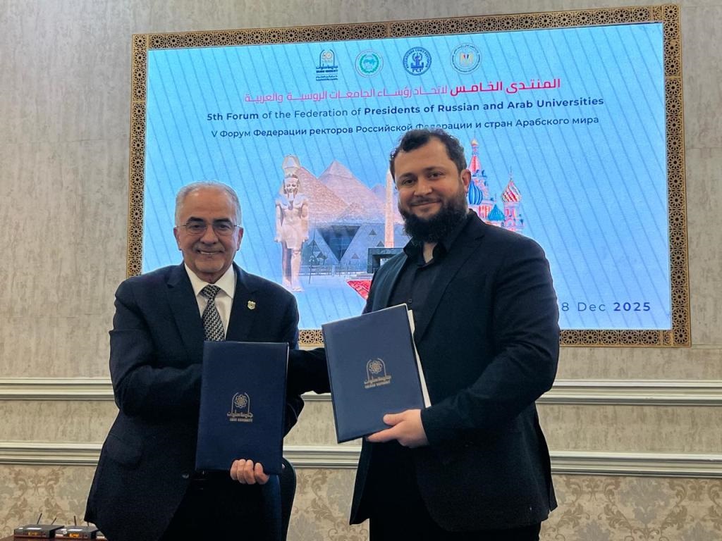 شارك رئيس جامعة عمّان الأهلية الأستاذ الدكتور ساري حمدان في أعمال المنتدى الخامس لرؤساء الجامعات العربية والروسية، الذي انطلقت فعالياته أول أمس الاثنين في جامعة العاصمة (حلوان سابقًا) بجمهورية مصر العربية، برعاية وزير التعليم العالي والبحث العلمي المصري الدكتور محمد أيمن عاشور، وبمشاركة واسعة من القيادات الأكاديمية العربية والروسية.