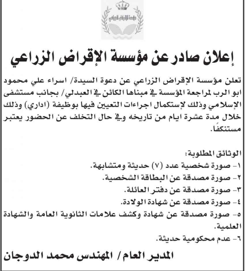 وظائف في مؤسسة الاقراض الزراعي .. الشروط والتفاصيل