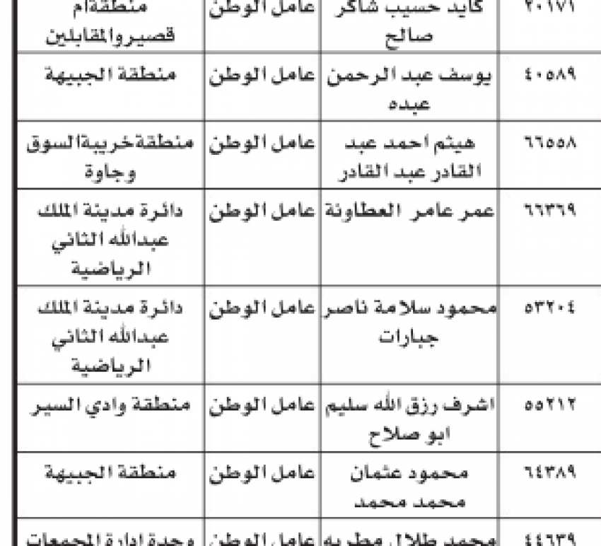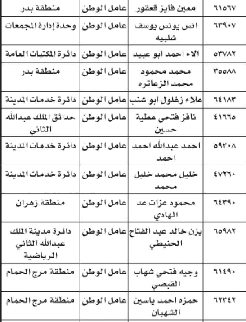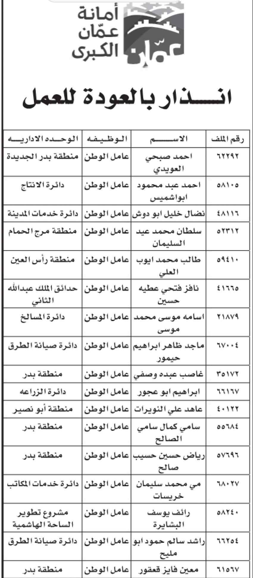 أمانة عمان تنذر موظفين - أسماء